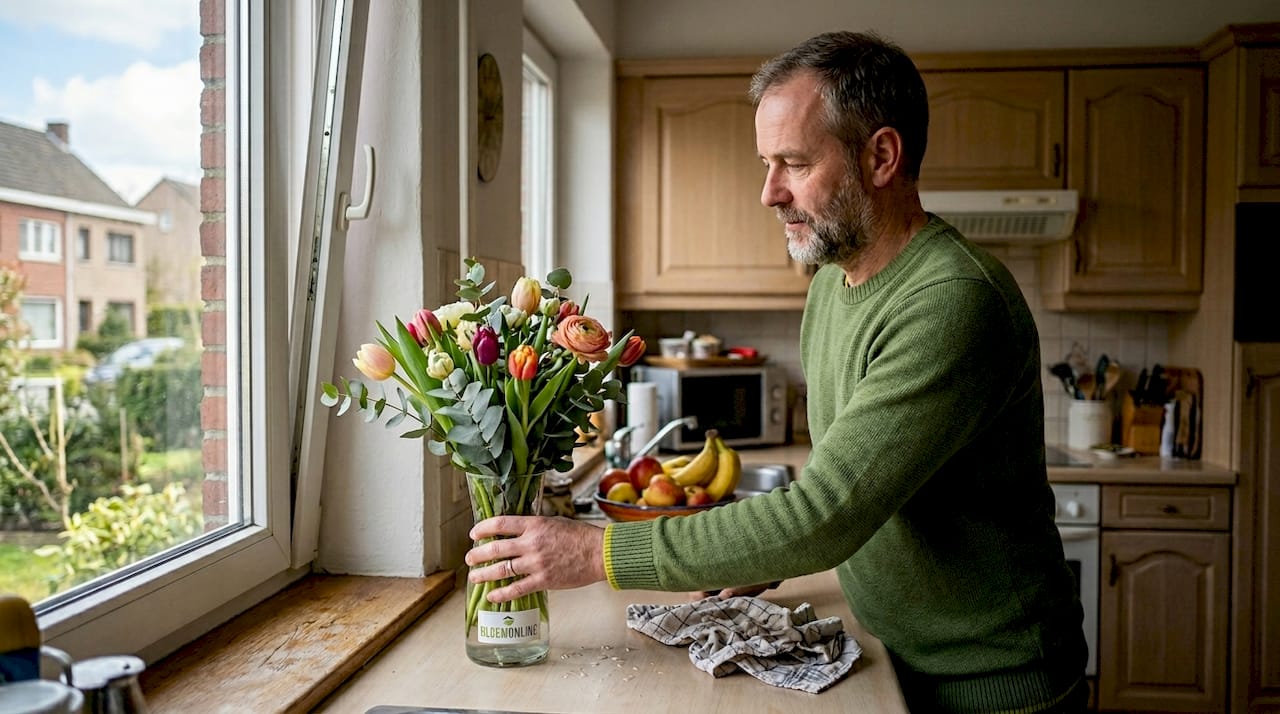 De meeste mensen weten niet dat de plek waar bloemen staan een enorm verschil maakt. Naast een vensterbank in de zon is de slechtste keuze. Direct zonlicht versnelt het verwelkingsproces aanzienlijk. Een koele, lichte plek zonder tocht is ideaal.