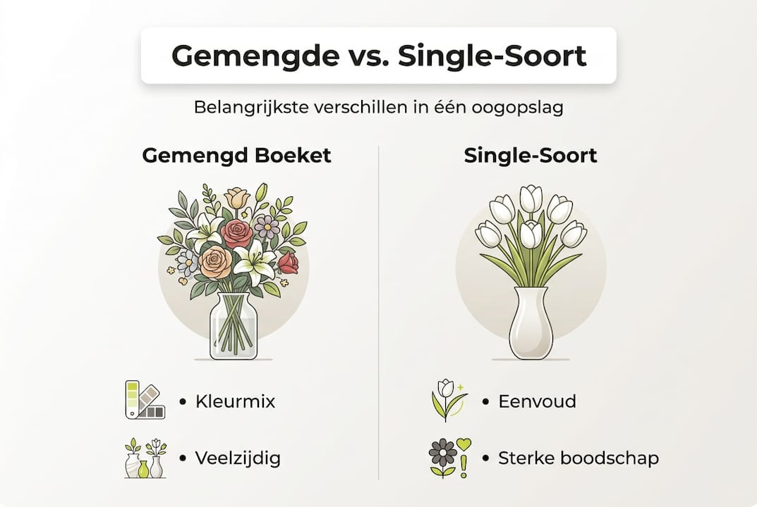| Aspect | Gemengd boeket | Single-soort boeket |